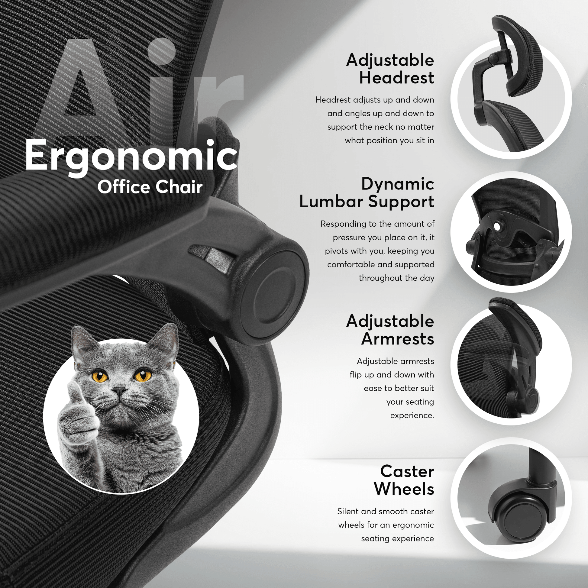 EXPERT-APPROVED ERGONOMIC DESIGN: Engineered for all-day comfort, the ErgoAir promotes better posture with its breathable mesh back, lumbar support, and adjustable features. Perfect for professionals, gamers, and home offices alike.